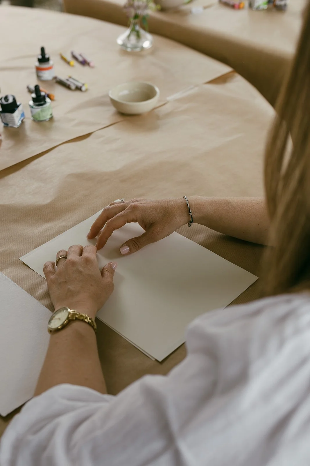 Ook geef ik creatieve groepsworkshops: perfect als cadeau voor vriendinnen, bijvoorbeeld tijdens een babyshower, of als origineel en inspirerend teamuitje. In een ontspannen sfeer gaan we samen aan de slag en is er volop ruimte voor creativiteit én gezelligheid. Ik werk zonder vaste locatie en kom graag naar een plek die jij kiest.